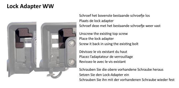 Bij de meeste BMW motoren is de voor-geïnstalleerde steun voorzien van een slot die je met de sleutel van je motor kunt vergrendelen en ontgrendelen. Door de lock adapter mee te bestellen kun je de Zumo XT2 -Tread2 ook afsluiten met deze sleutel.
