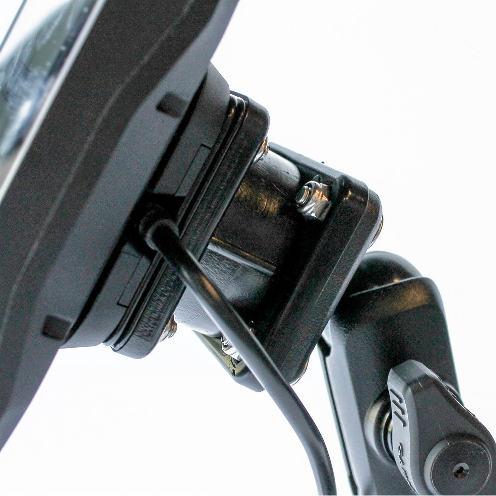 Onze ontwerpers hebben daar een bijzonder eenvoudige oplossing voor bedacht: de ZumoTwist. Deze wordt simpelweg geschroefd tussen de motormontagesteun en de Garmin navigatiehouder en zorgt ervoor dat je de Zumo 90° kunt draaien.